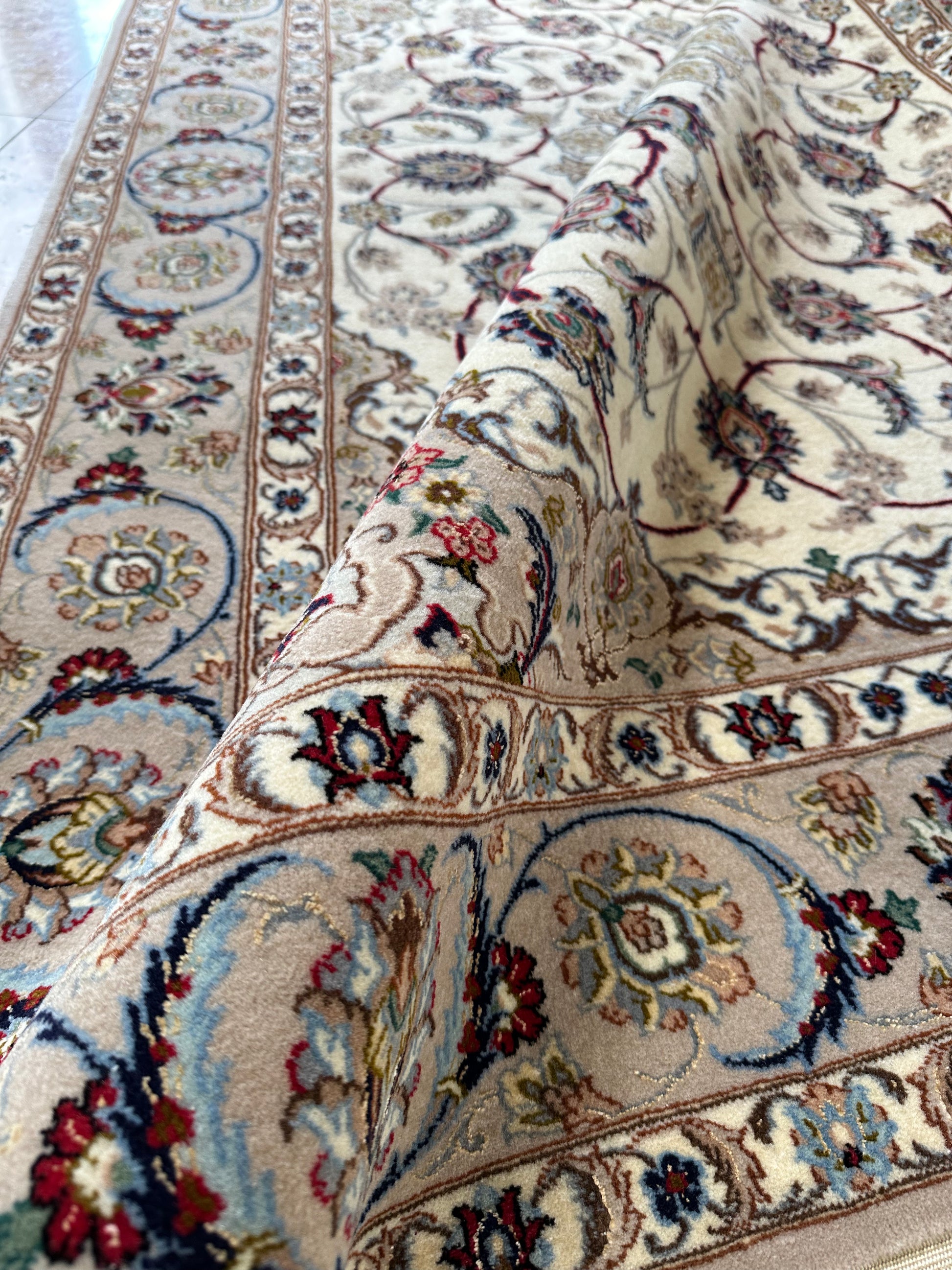 This Floral Isfahan Persian Rug exemplifies masterful Persian artistry with its detailed floral motifs and harmonious design. Woven using premium materials, this rug combines durability with refined elegance, making it an ideal choice for enhancing sophisticated interiors. Its classic pattern and balanced colors reflect the rich cultural heritage of Isfahan craftsmanship, offering both aesthetic beauty and lasting quality for discerning collectors and enthusiasts.
